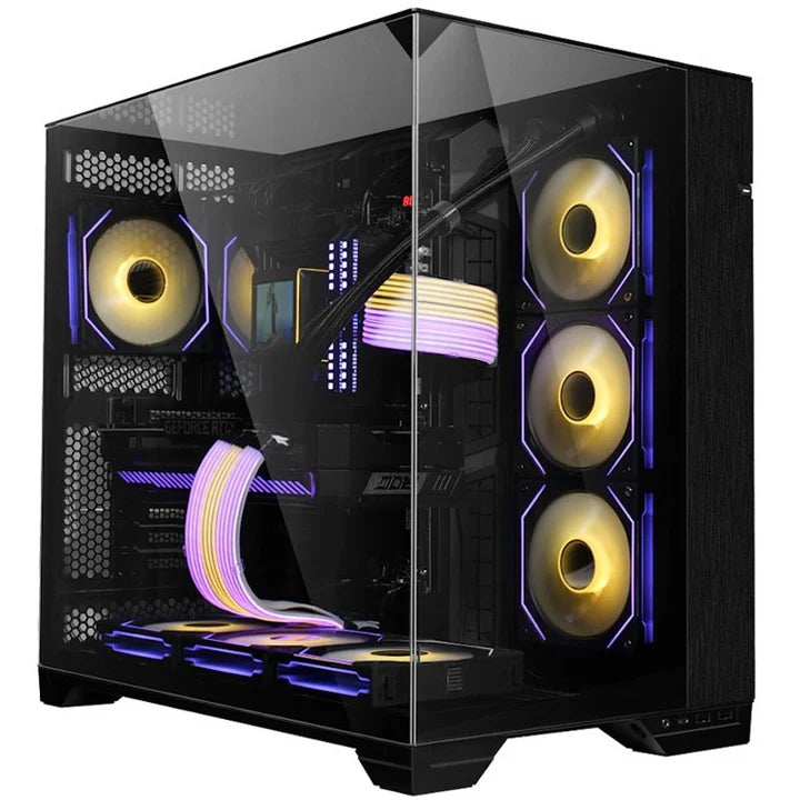 قم بترقية بنية جهاز الكمبيوتر الخاص بك مع حقيبة الألعاب LIAN LI O11 VISION من الزجاج المقسّى متوسطة الحجم - باللون الأسود . تم تصميم هذه الحقيبة متوسطة الحجم مع وضع الجماليات والأداء في الاعتبار، حيث توفر تجربة بصرية فريدة بتصميمها الأنيق ومساحة واسعة للمكونات القوية. تتيح لك الألواح الزجاجية المقسّى بالكامل عرض بنيتك بكل مجدها مع الحفاظ على تدفق الهواء والتبريد الممتازين. (المراوح غير متضمنة - يمكن شراء المراوح ذات الإضاءة RGB بشكل منفصل.)