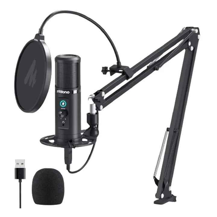 حامل الميكروفون USB AU-PM422 من Maonocaster هو ميكروفون مكثف قلبي الشكل احترافي مصمم لتوفير جودة صوت استثنائية للتسجيل والتدوين الصوتي والبث المباشر. بفضل تصميمه الأنيق وزر كتم الصوت المدمج والتحكم في مكسب الميكروفون ومراقبة زمن الوصول الصفري، يعد هذا الميكروفون مثاليًا للمبدعين الذين يطلبون جودة صوت فائقة وتحكمًا سلسًا.