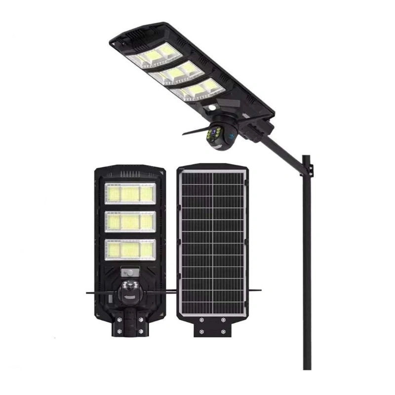 جهاز أمني خارجي ٢ في ١ يعمل بالطاقة الشمسية، يجمع بين ضوء LED ساطع (~٤٥٠ واط) وكاميرا ٤ جي مدمجة للمراقبة عن بُعد دون الحاجة للواي‑فاي أو الكهرباء المنزلية. تتميز الكاميرا بدقة ٣ ميجابكسل وقدرة مشاهدة ٣٦٠°، ودعم الشبكة الخلوية ٤ جي للبث المباشر واستلام التنبيهات، مع صوت وفيديو ثنائي الاتجاه، وبطارية عالية السعة ١٨٠٠٠ مللي أمبير تُشحن عبر اللوحة الشمسية المدمجة. مناسب للمراقبة الخارجية في الأماكن النائية أو بدون شبكة كهرباء، مثل البوابات والساحات وممرات السيارات.
