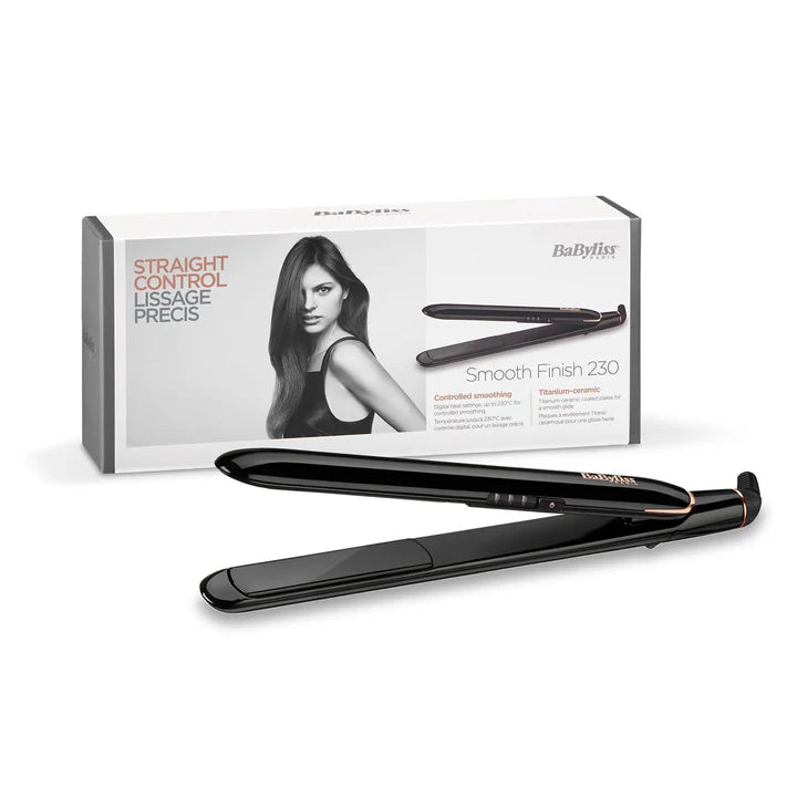 High heat straightener with tourmaline-ceramic plates for an ultra-smooth glide and a sleek shiny finish.