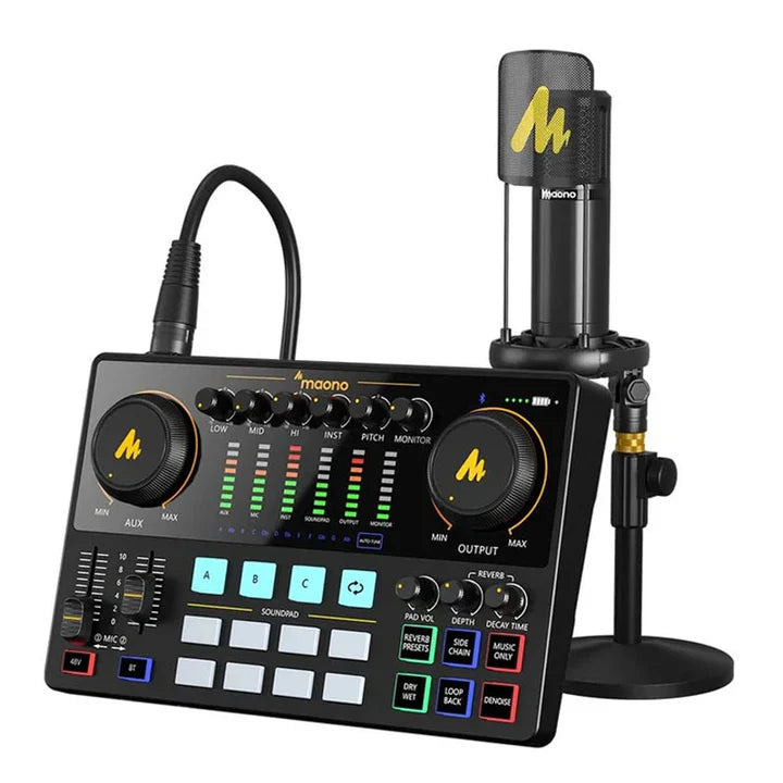 The Maonocaster AME2A is a comprehensive all-in-one podcasting solution that combines an audio interface and an XLR condenser microphone in a single bundle. Perfect for podcasters, streamers, and content creators, this bundle includes everything you need to achieve professional-grade audio quality for your recordings, live streams, or podcasts.