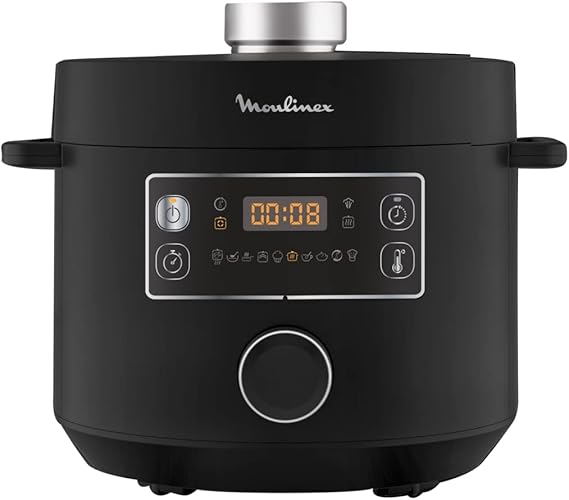 The MOULINEX Electrical Pressure Cooker | Turbo Cuisine Electric Cooker | 5 Litre | 915-1090W is a versatile and powerful kitchen appliance designed to speed up your cooking without compromising on flavor or texture. With a 5L capacity and adjustable power output ranging from 915 to 1090 watts, this pressure cooker offers the convenience of preparing your favorite meals quickly and efficiently, perfect for busy individuals or families.