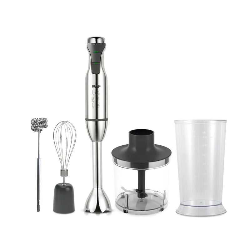 5-in-1 Multi-Purpose: Versatile handheld stick blender, 500ml mixing beaker, 600ml food chopper, egg whisk and milk frother meet your various needs for mixing, chopping, egg-beating, puree and preparing baby food. The one-click installation make removal and cleaning so easy.