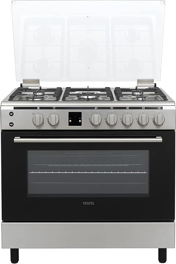 The Vestel Gas Cooker 90x60, 5 Burners, Stainless Steel, Full Safety offers the perfect blend of style, functionality, and safety. With its high-efficiency burners, ample cooking space, and advanced safety features, it is an excellent choice for anyone looking to enhance their kitchen with a reliable and durable cooking appliance.